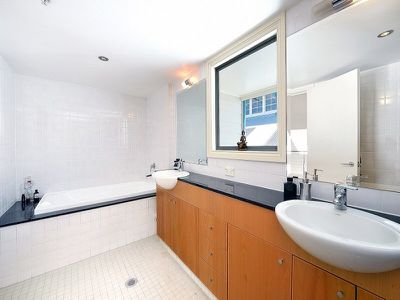 Upstairs has a huge loft style bedroom with ample built in robes plus a storage room. Large en suite bathroom with dual vanities, separate bath and shower. Bathed in natural light with skylights, cross ventilation and ducted air conditioning.