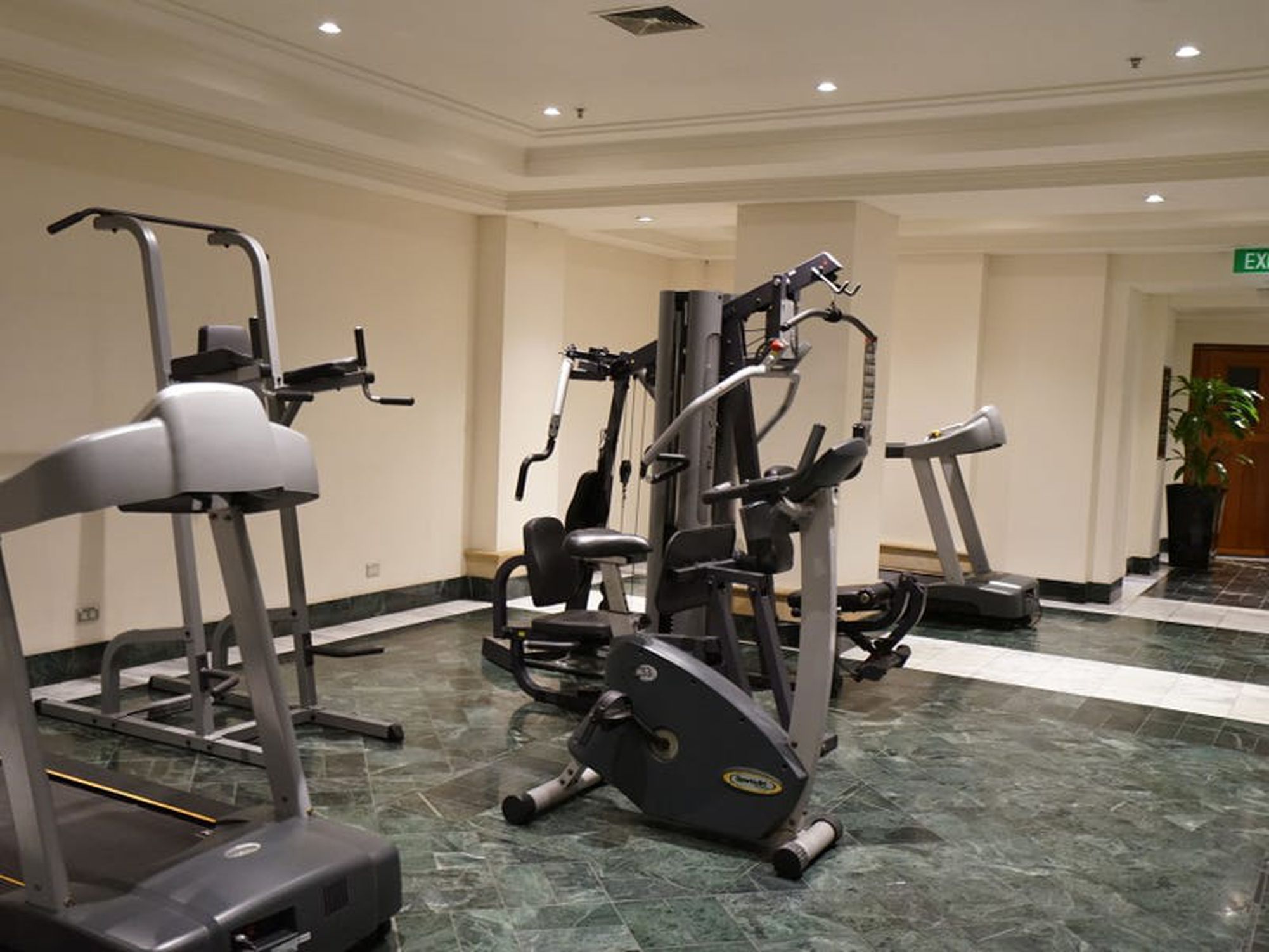 Resort style facilities include pool, well equipped gym, both wet and dry saunas.