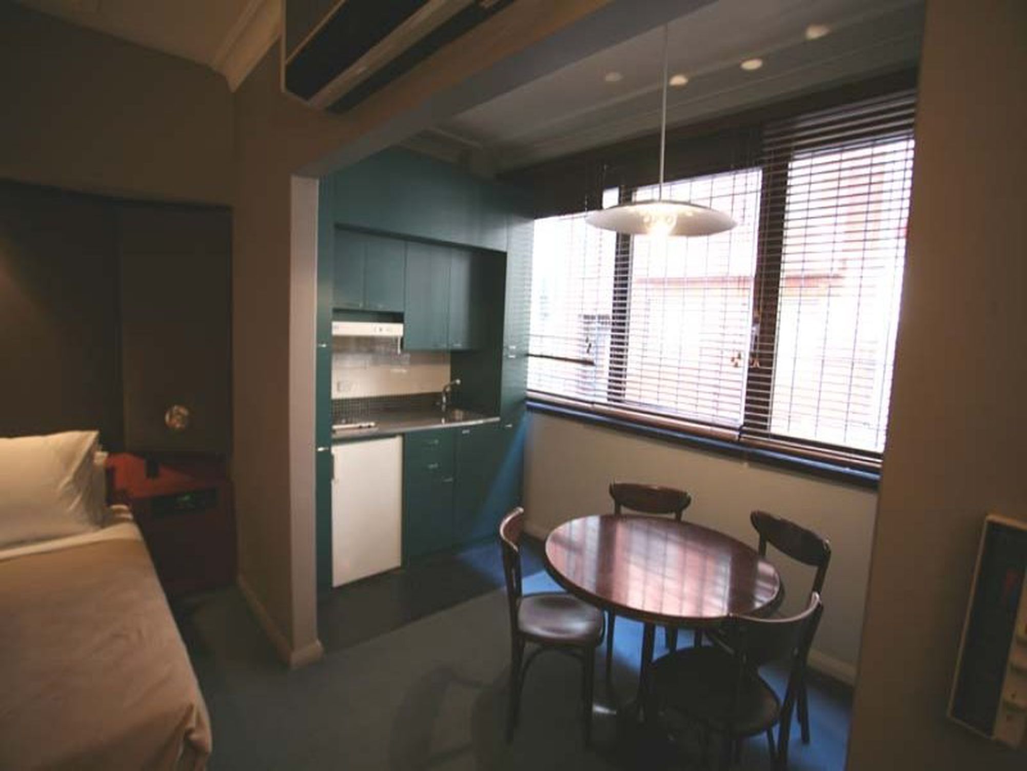 Light, self-contained studio with all the mod cons; queen sized bed, fully equipped kitchen, tv/dvd and air conditioned.