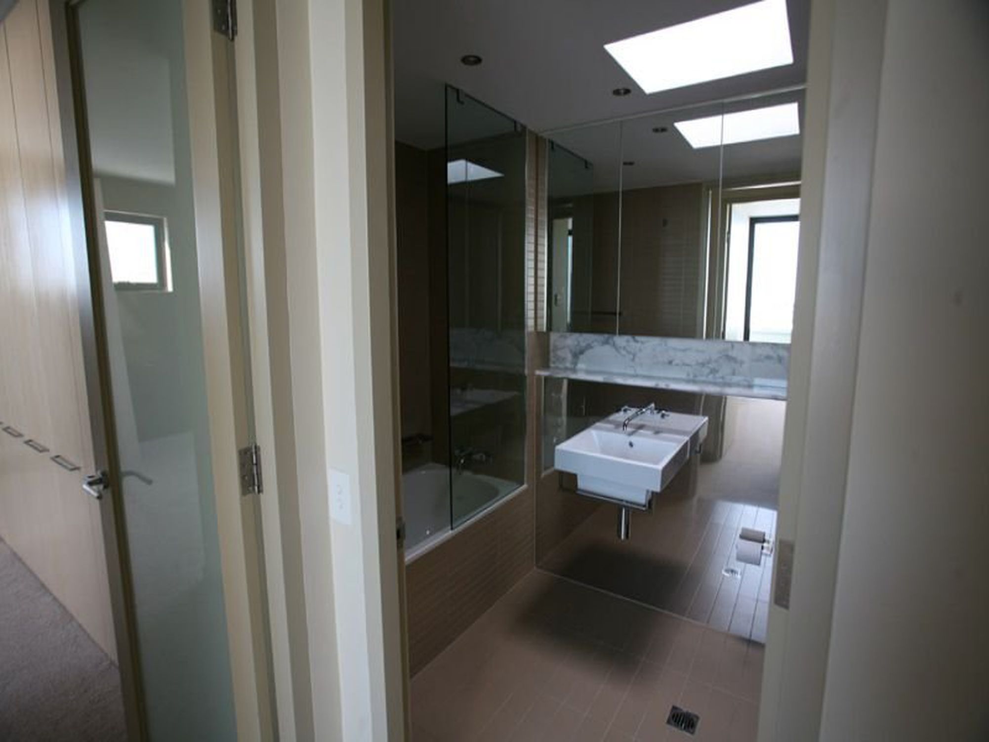 Features large combined living and dining areas, kitchen designed by Marchese Partners boasting quality Miele stainless steel gas appliances with abundant stone benchtop space and dishwasher, two bathrooms - main with bath, both with stylish frameless shower screens and free standing wash basins and heated towel racks, internal laundry, air conditioned throughout, study/media area and enormous 56 sqm terrace/balcony.