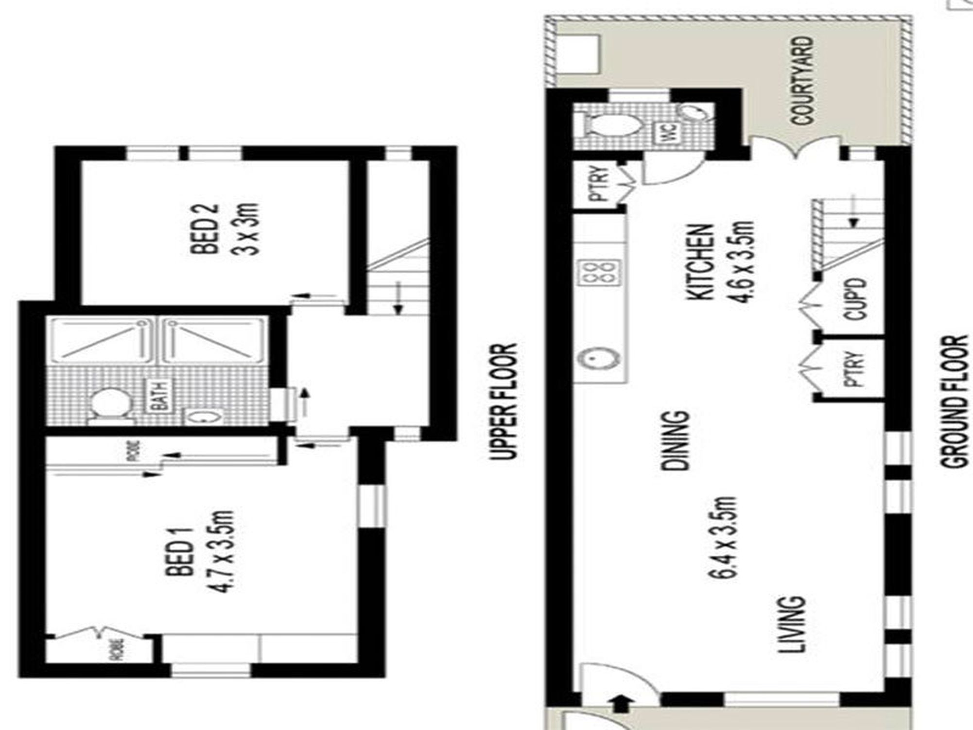 The second floor features polished wooden floors, two double sized bedrooms, main with built-in robes second bedroom with air conditioning. Beautifully appointed main bathroom features double shower/wet room.