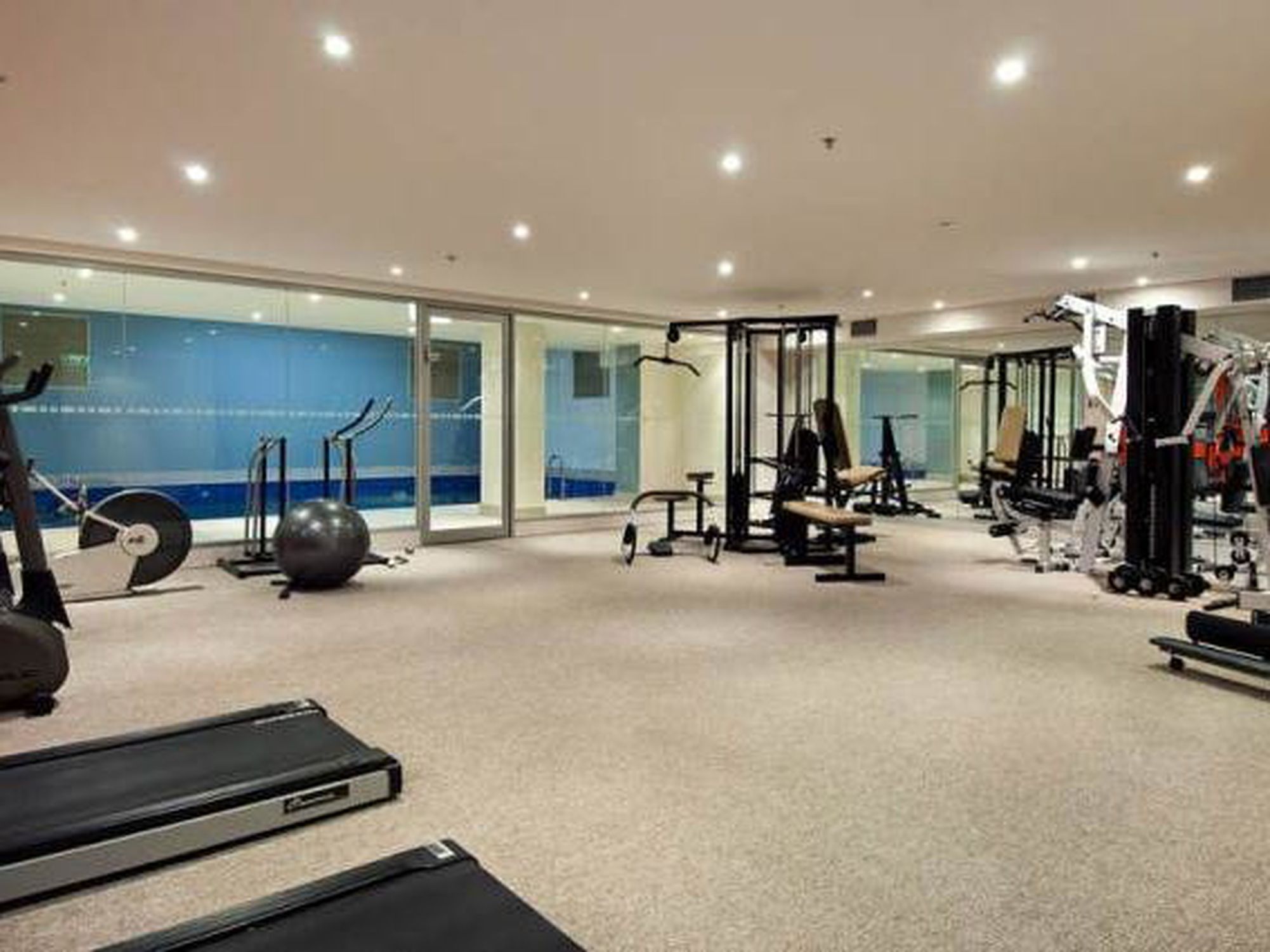 Building facilities include a heated lap pool and a well-equipped gymnasium.