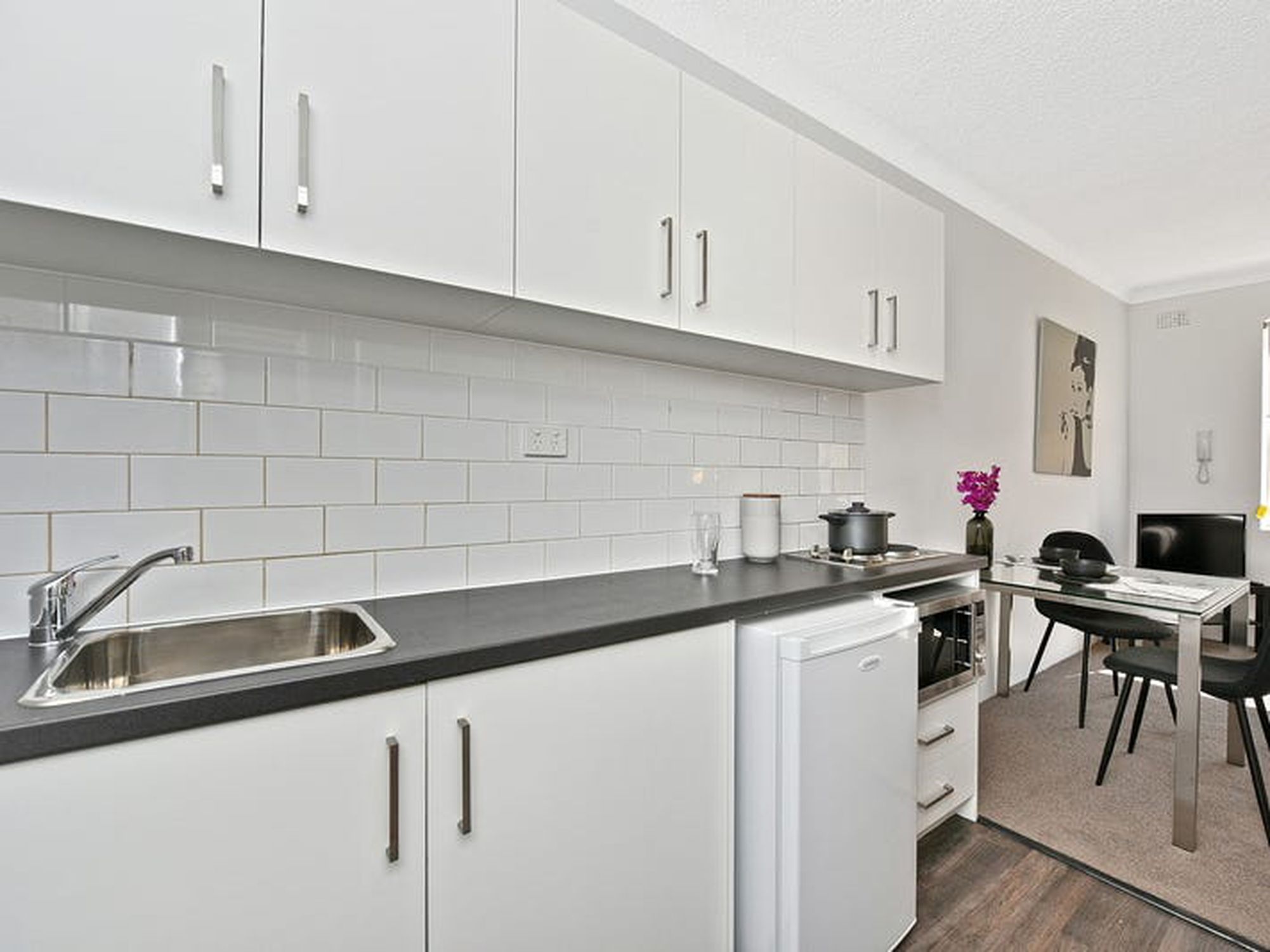 The apartment is in in a fantastic location, in an established quiet tree lined street, yet only moments from restaurants, cafes, bus and light rail.