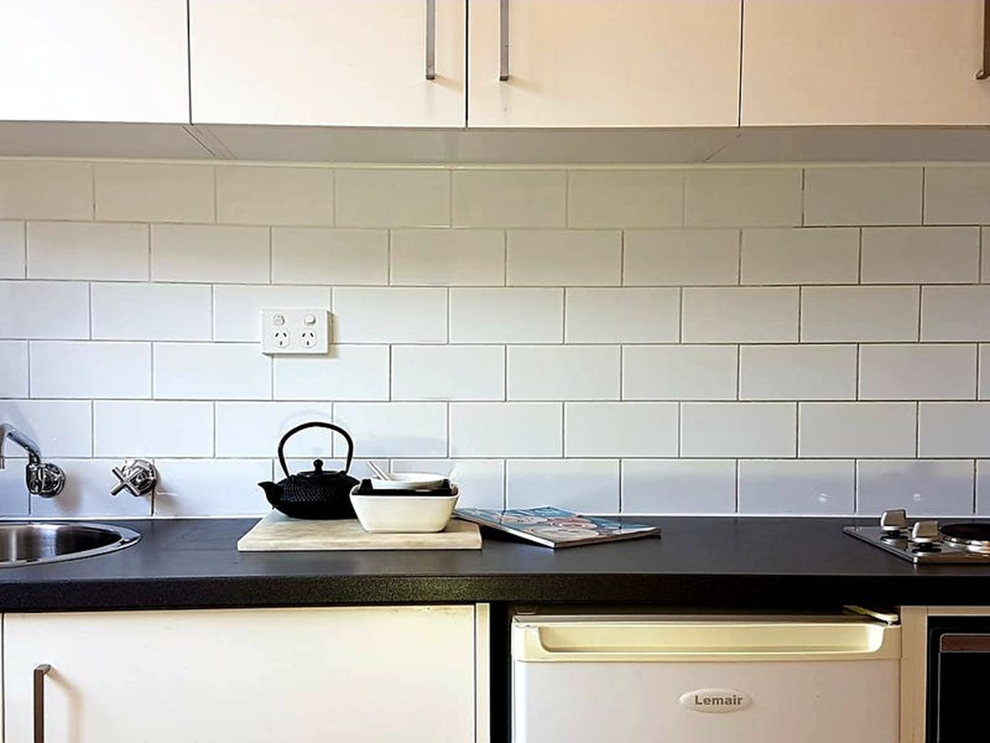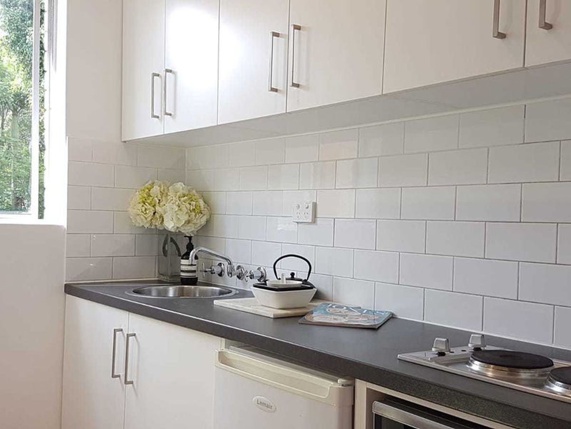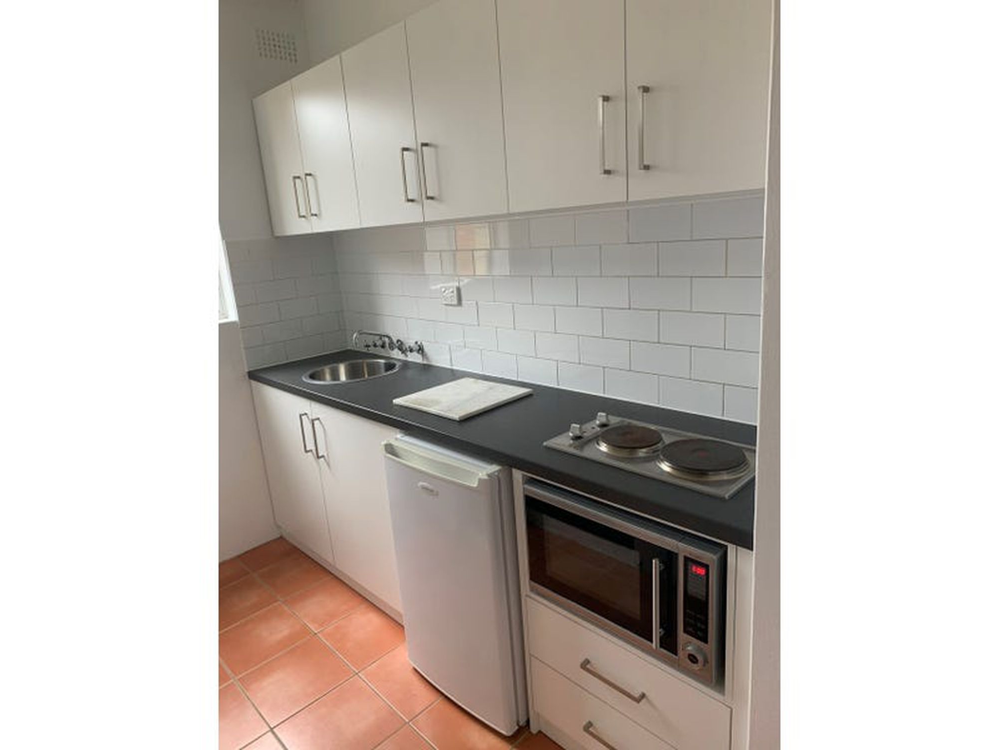 - Microwave and twin hot plate kitchenette