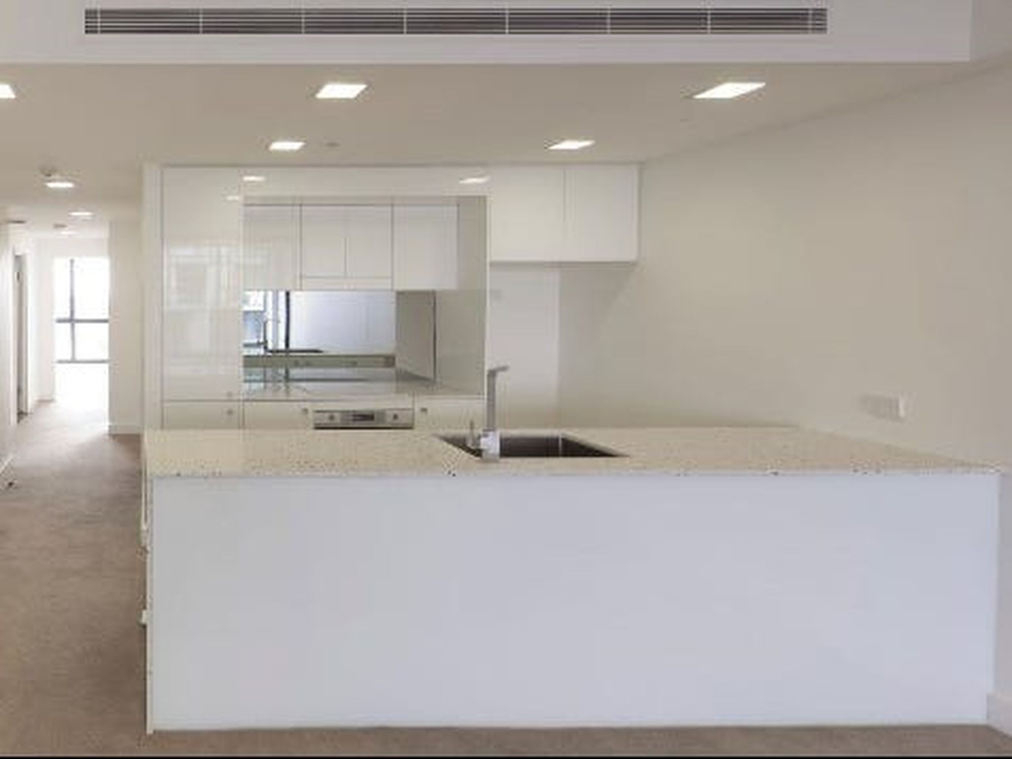 - Ultra modern kitchen with stone bench top, integrated dishwasher