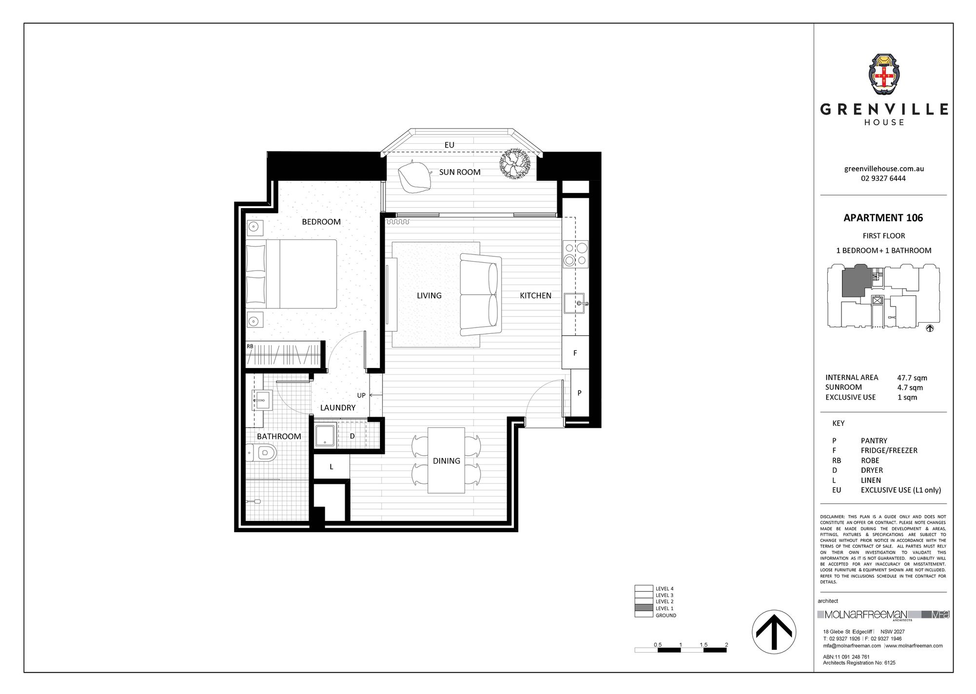 Generously proportioned north facing one bedroom apartment set in the recently completed boutique "Grenville House" conversion.