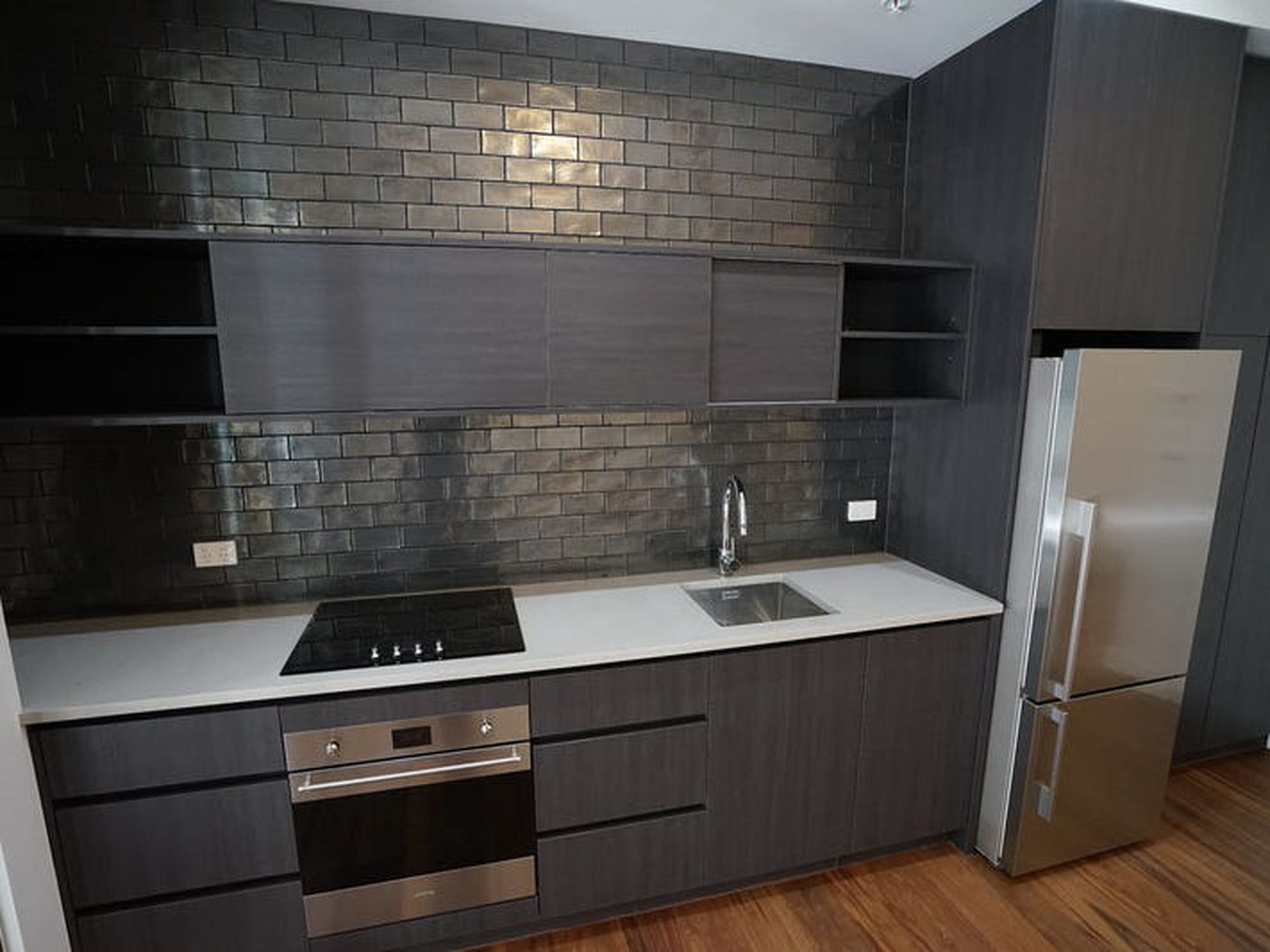 - Superb kitchen with the latest sleek appliances and raw concrete